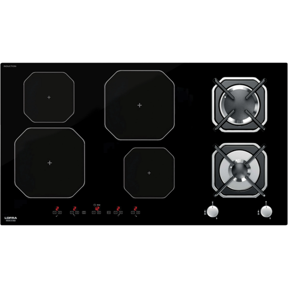 כיריים משולבות 2 להבות גז ו- 4 מוקדי בישול אינדוקציה 90 ס''מ Lofra HGN924I תוצרת איטליה - תלת פאזי - צבע שחור אחריות ע"י היבואן הרשמי