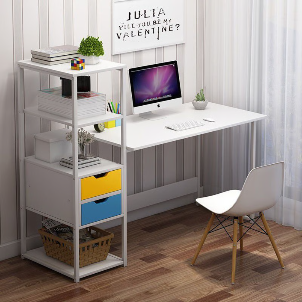 שולחן מחשב כתיבה כולל מדפים 120 ס"מ רוחב Rosso Italy MSR-1139 - צבע לבן - יבואן רשמי