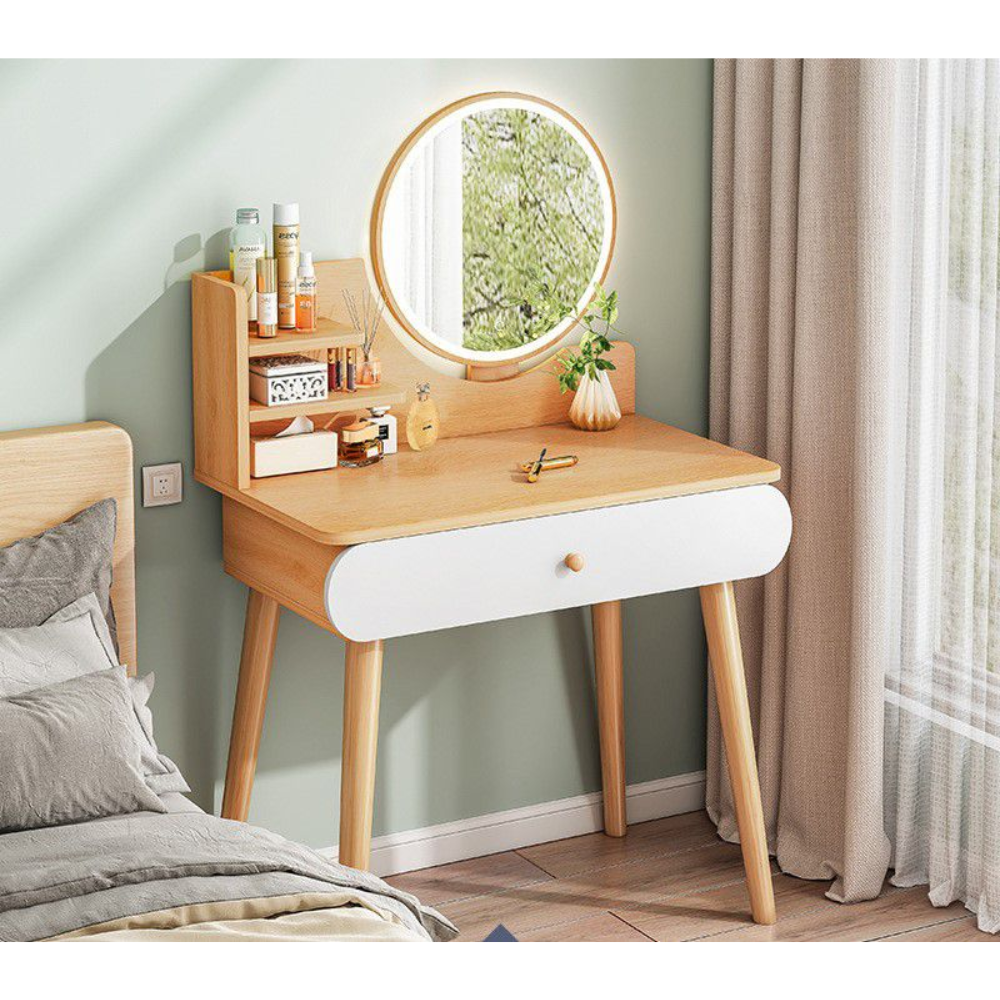 שידת איפור עם מראה ותאורת לד רוחב 60 ס"מ דגם RSM-2074 צבע עץ מבית Rosso italy - יבואן רשמי
