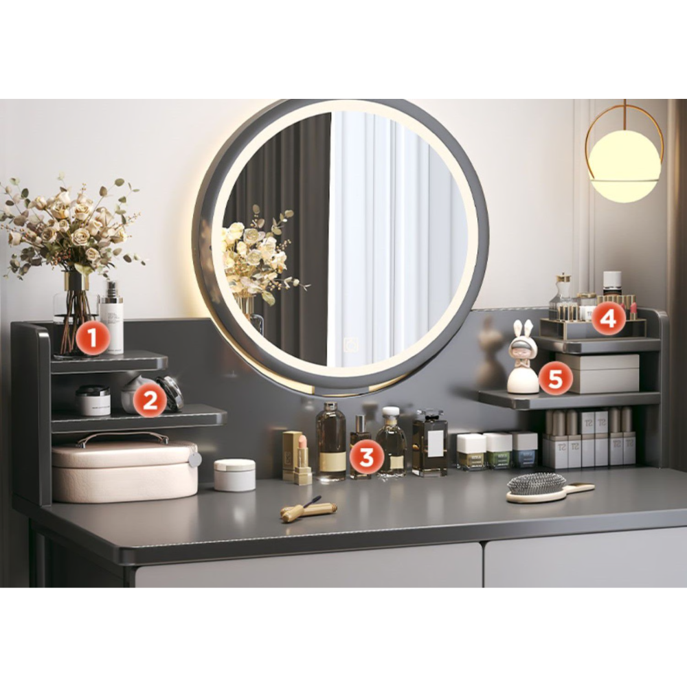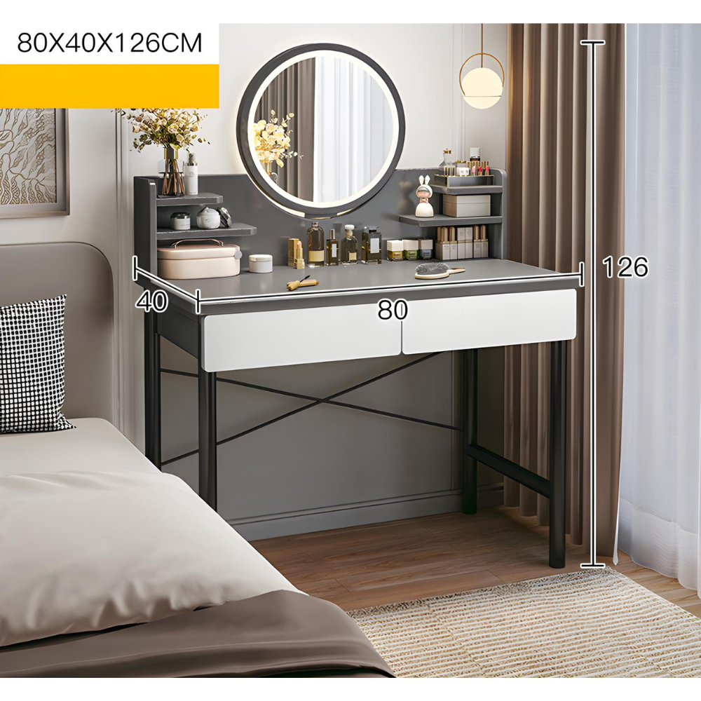 שידת איפור עם מראה ותאורת לד רוחב 80 ס"מ דגם RSM-2067 צבע אפור לבן מבית Rosso italy - יבואן רשמי