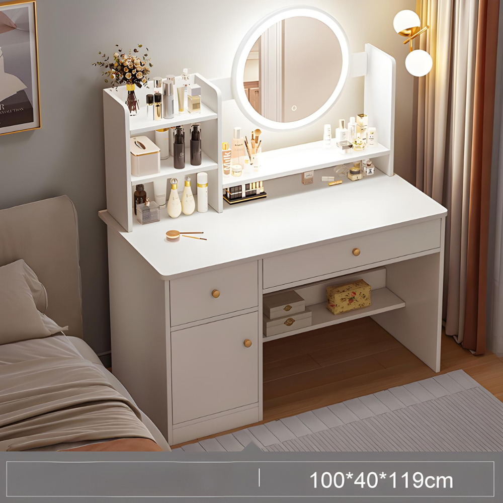 שידת איפור עם מראה כולל תאורת LED ברוחב מטר Rosso Italy RSM-3005 צבע לבן - יבואן רשמי