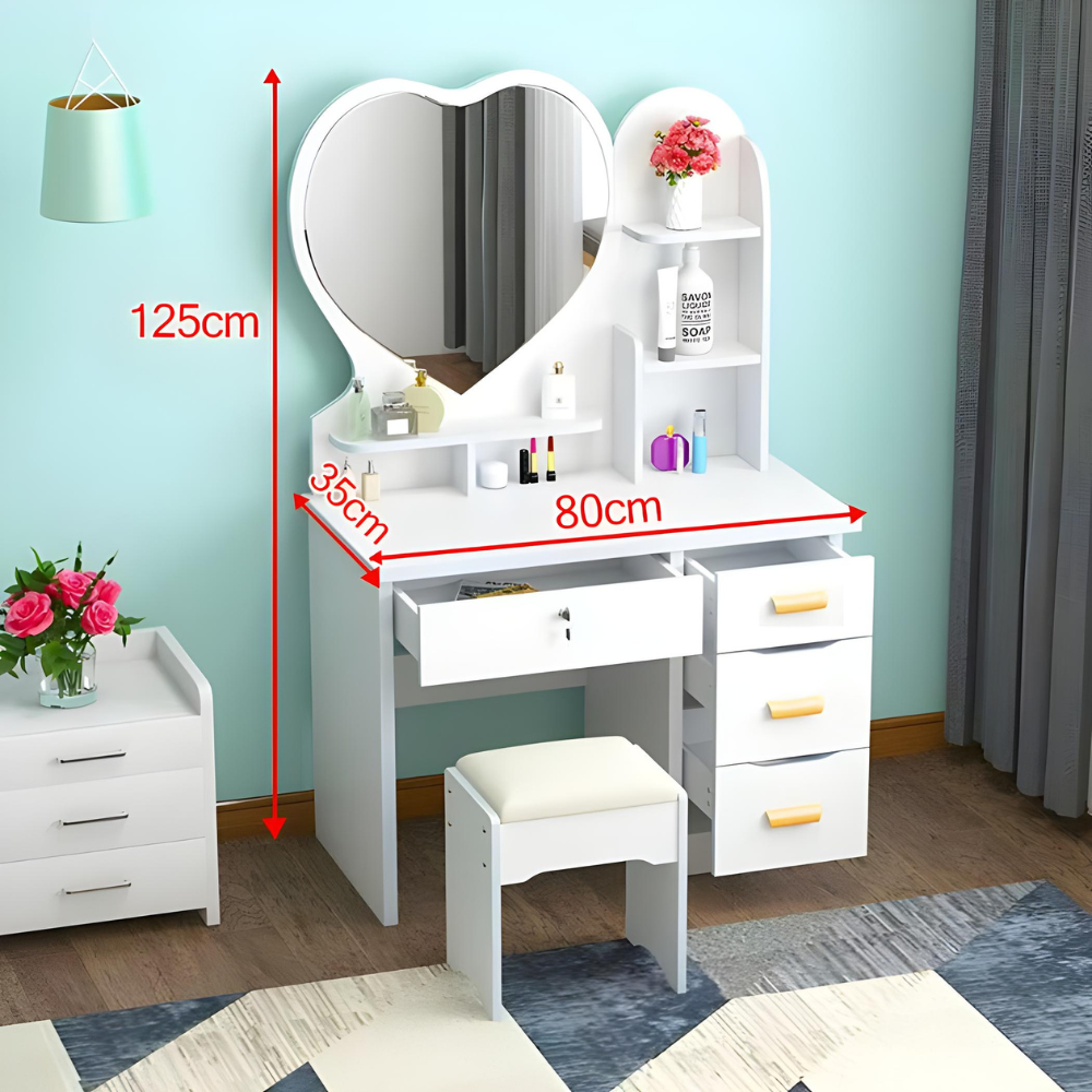 שידת איפור עם מראה צורת לב וכסא ברוחב 100 ס"מ לבן דגם ROSSO ITALY ב - יבואן רשמי