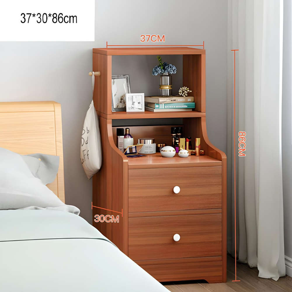 השידה שמשדרגת כל בית - שידת לילה גבוהה בעיצוב ייחודי עם שתי מגירות ומדפים. עיצוב מהמם ויוקרתי ושפע מקום אחסון.