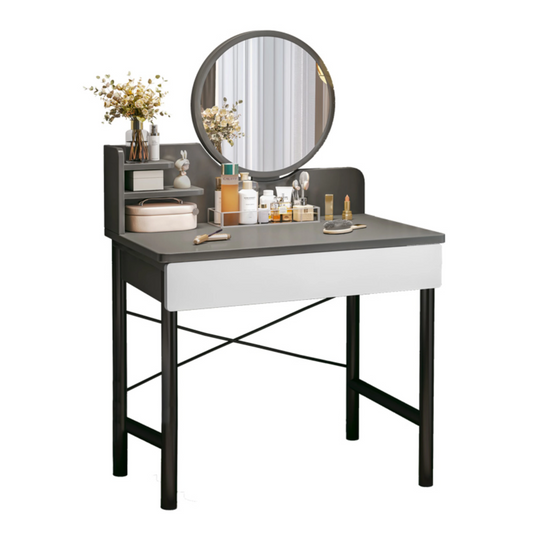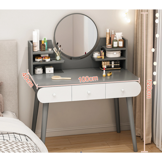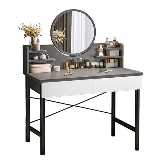שידת איפור עם מראה רוחב 100 ס"מ דגם RSM-1016 מבית ROSSO ITALY צבע אפור כהה מגירות לבנות - יבואן רשמי