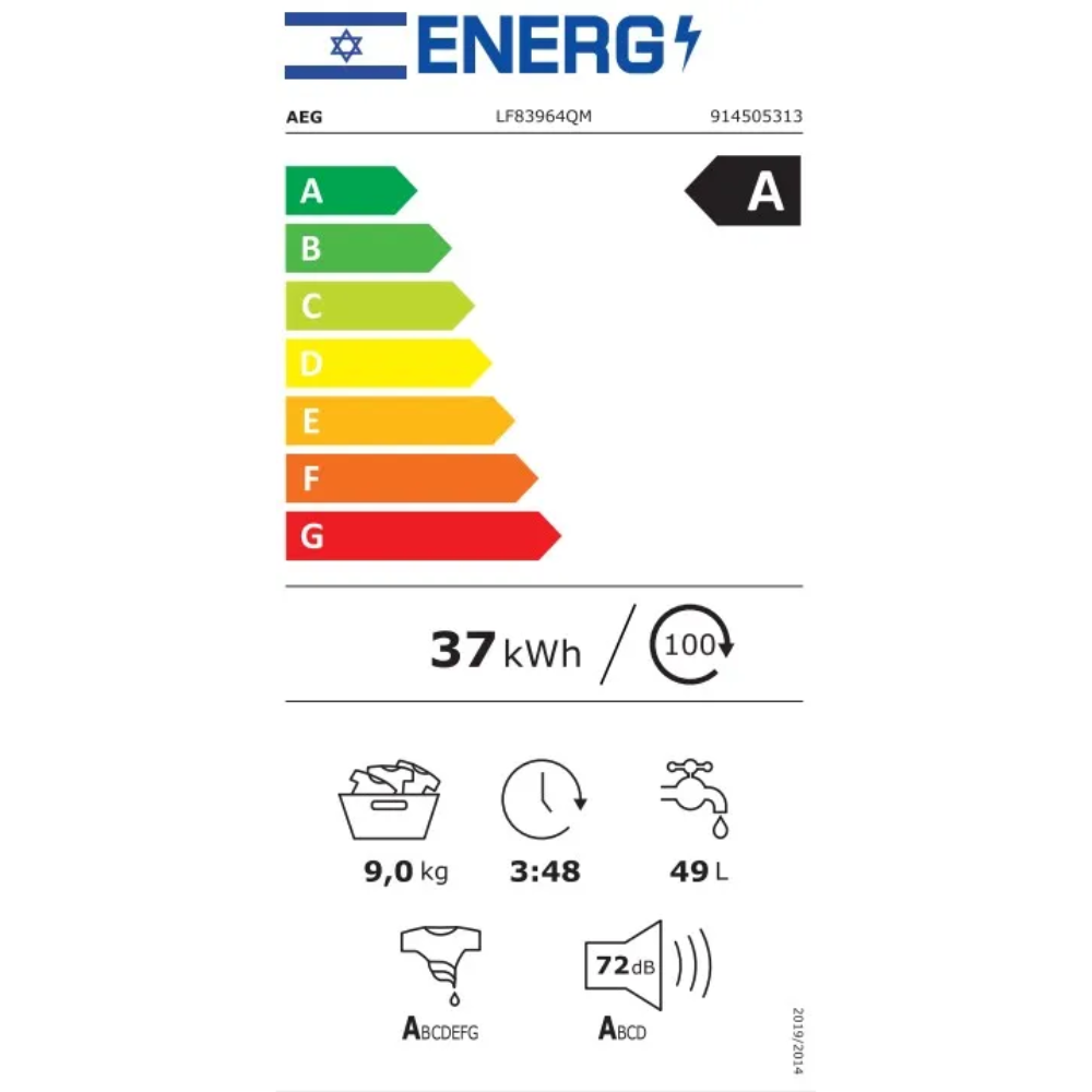 מכונת כביסה 9 ק"ג דגם AEG LF83964QM - יבואן רשמי