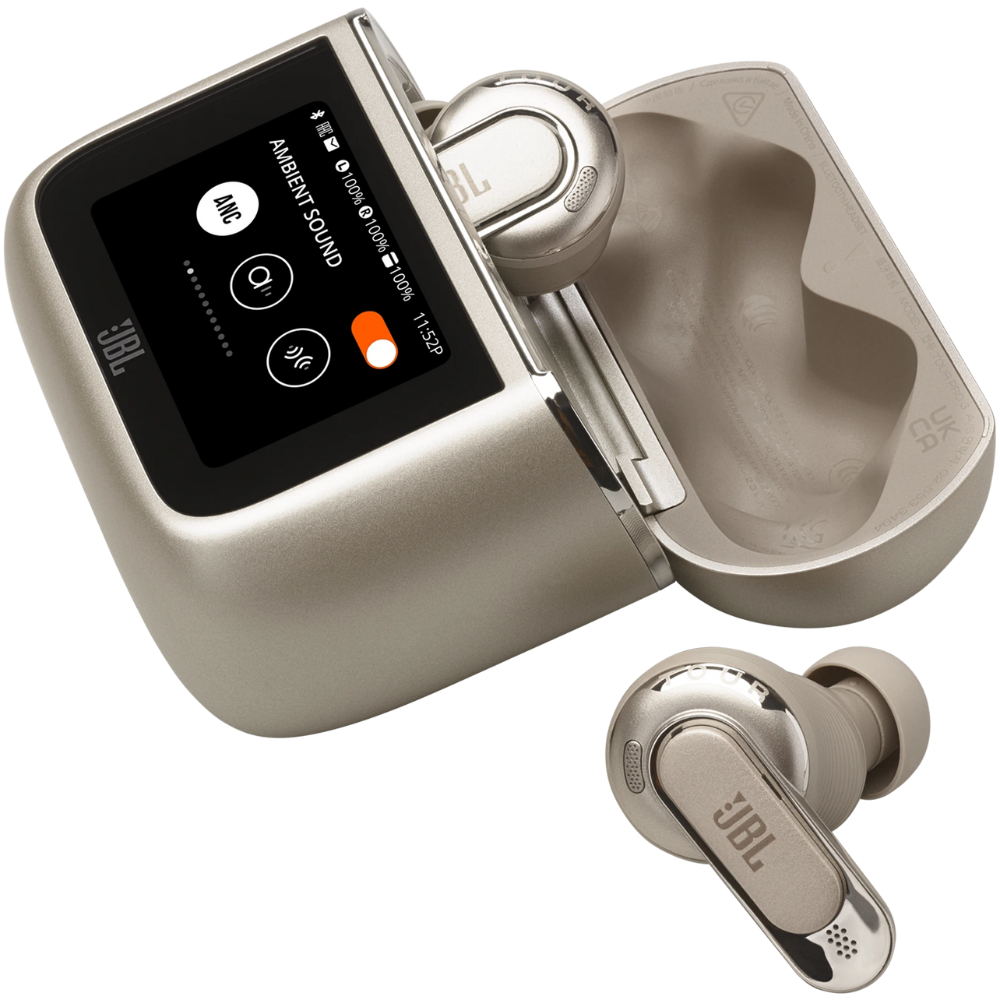 אוזניות אלחוטיות עם כיסוי חכם ומשתיק רעשים JBL Tour Pro 3 TWS - צבע בז שנה אחריות ע"י - יבואן הרשמי