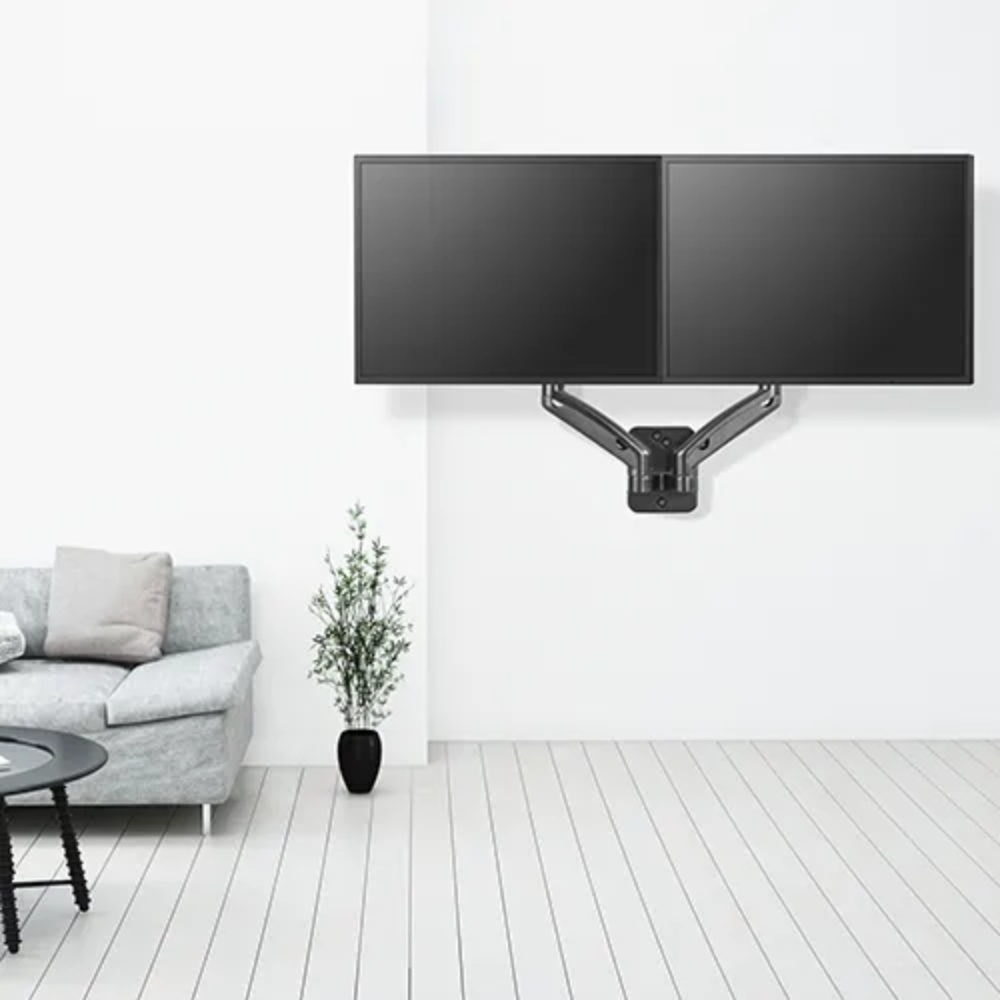 • זרוע הידראולית לקיר לתליית 2 מסכי מחשב בגודל 17″–32″