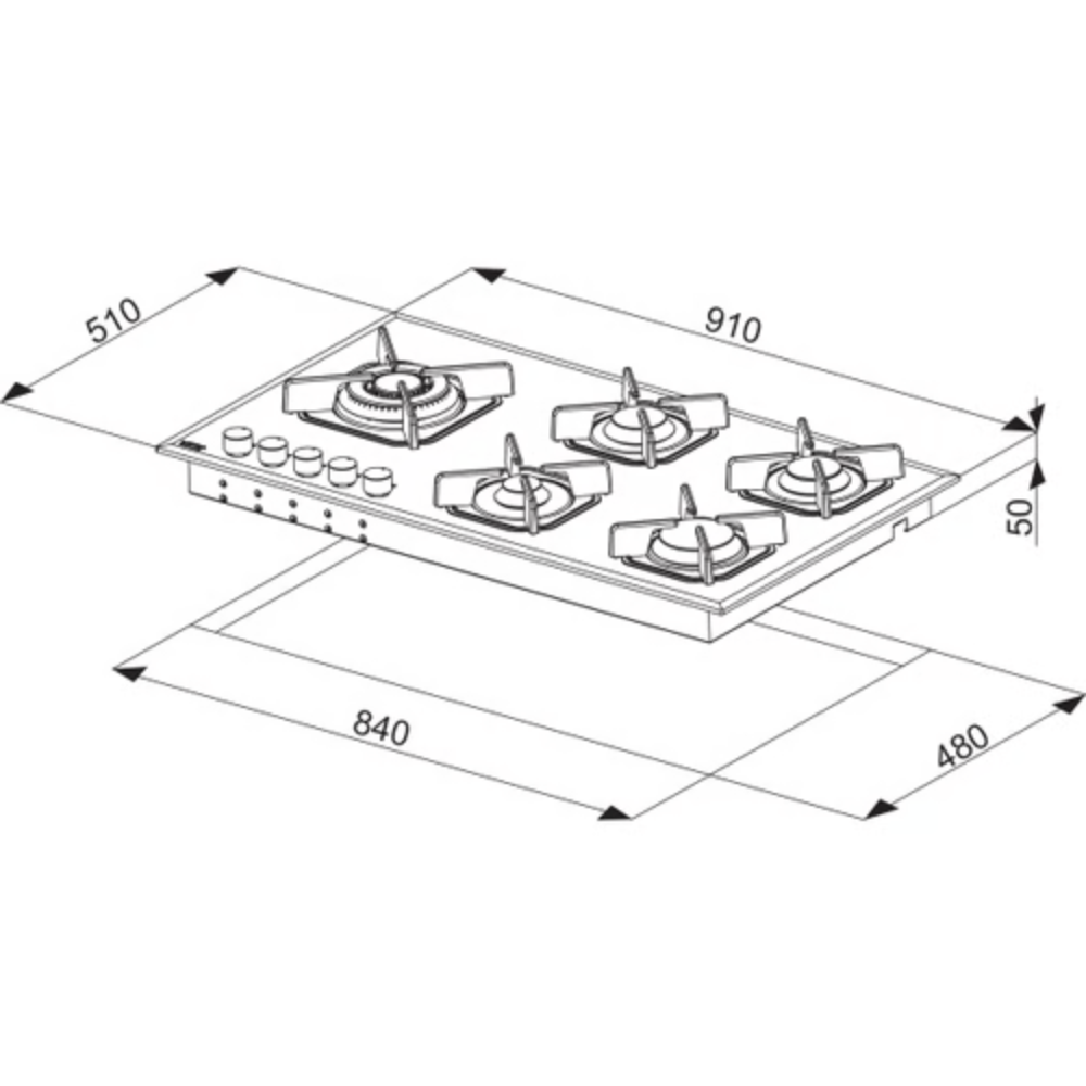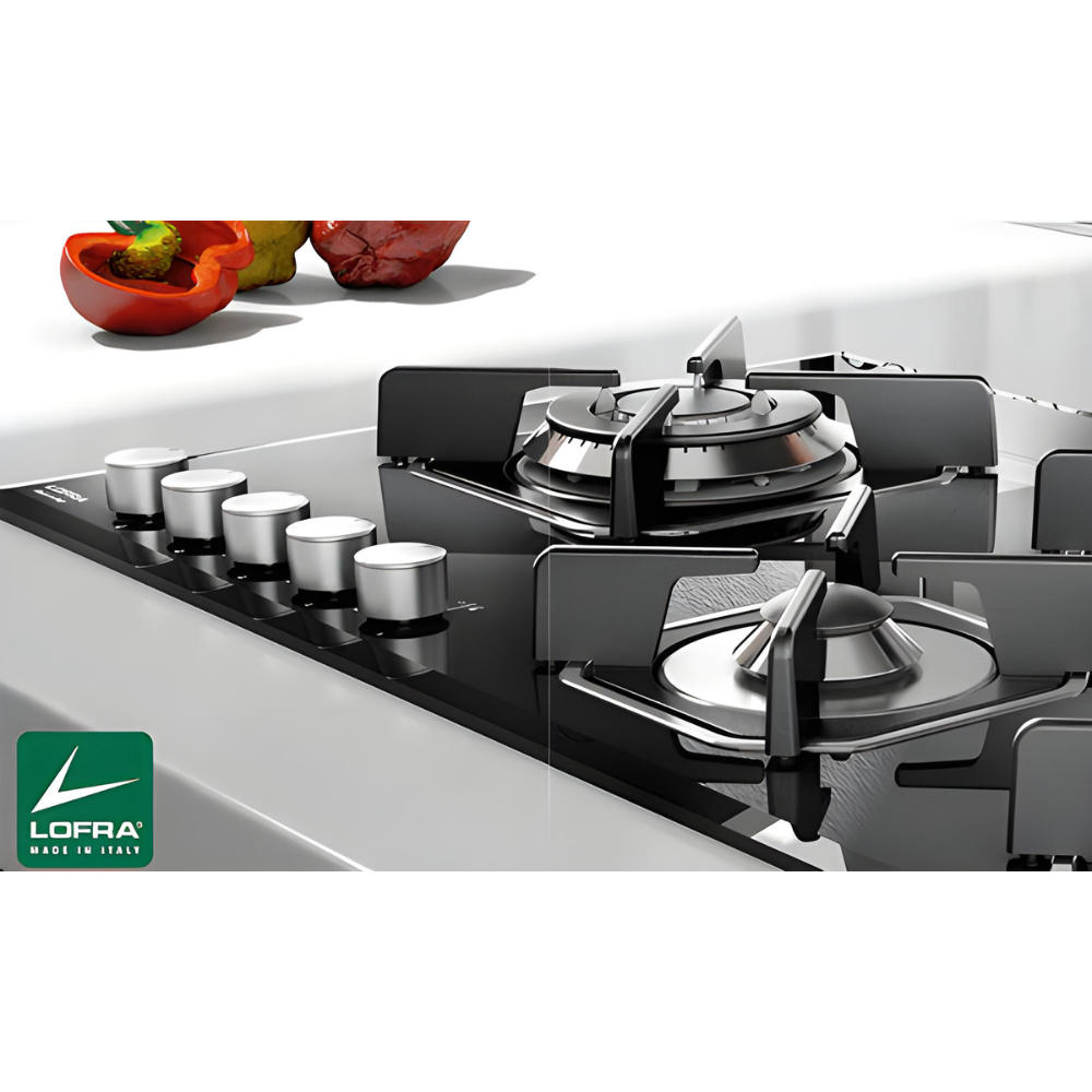 כיריים גז 5 להבות HGB95O LOFRA זכוכית לבנה תוצרת איטליה - אחריות - יבואן רשמי