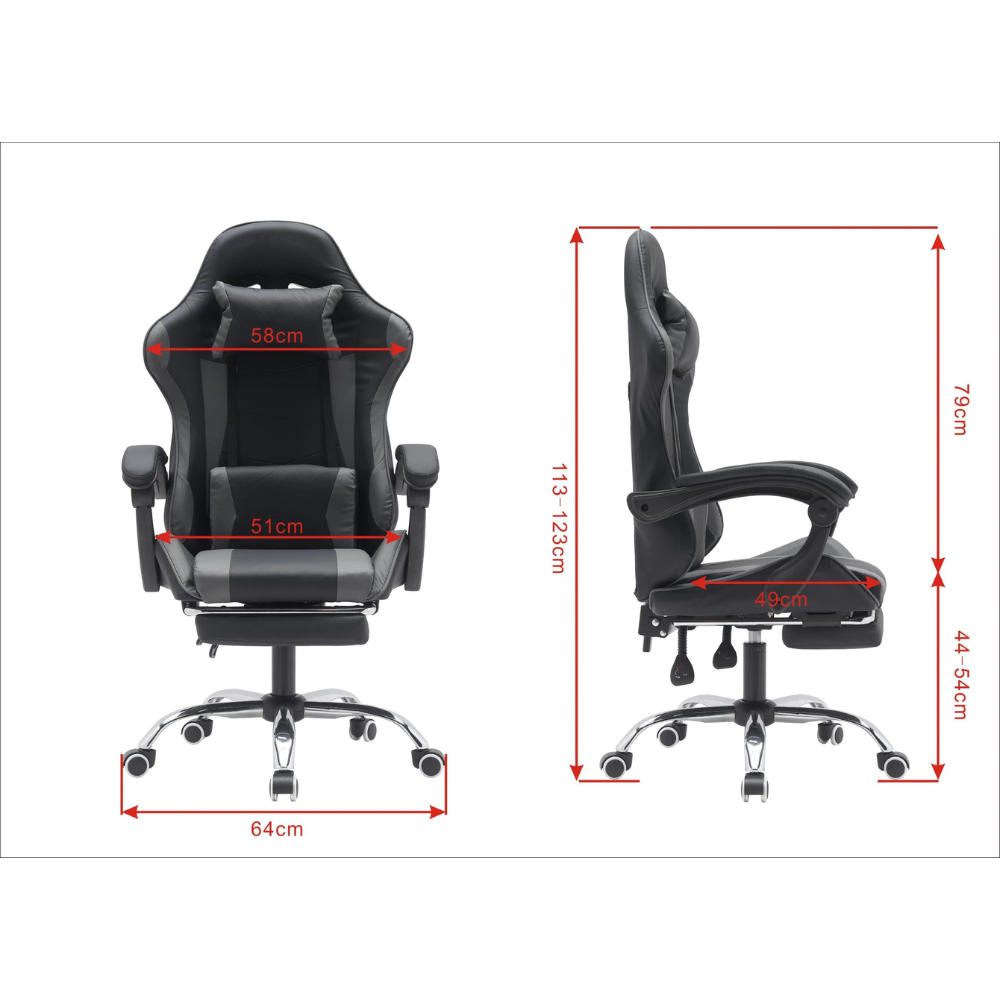 כסא גיימרים עם הדום ומסאז' רטט RSM-1044 שחור עם אפור ROSSO ITALY - יבואן רשמי