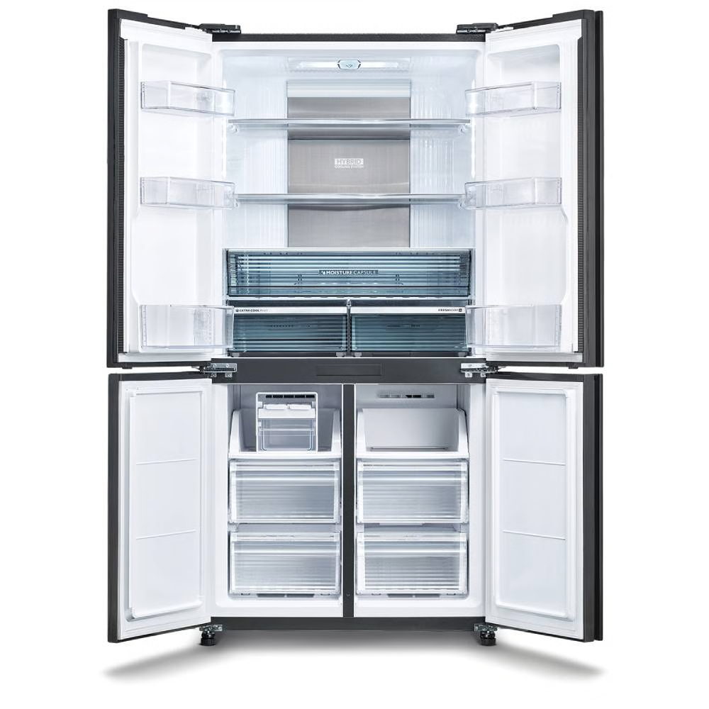 מקרר 4 דלתות מקפיא תחתון 572 ליטר נטו Sharp SJ-FFS89-BK - גימור זכוכית שחורה - יבואן רשמי