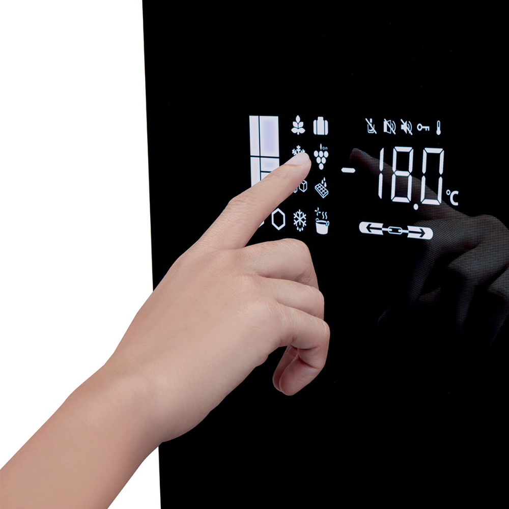 פאנל הפעלה חיצוני בטכנולוגיית Touch, מצב ECO, תאורת LED היקפית (48 נורות) ותאורה פנימית, מדפי זכוכית רחבים, מסנן ננו, מצב חופשה, מחשב שליטה מרכזי, התראה קולית לדלת פתוחה, טיימר ונעילת ילדים. יצרן קוביות קרח חשמלי אוטומטי (4 סוגי קוביות) עם מיכל מילוי, Express Ice, Fast Freeze וניקוי עצמי למגש הקרח.