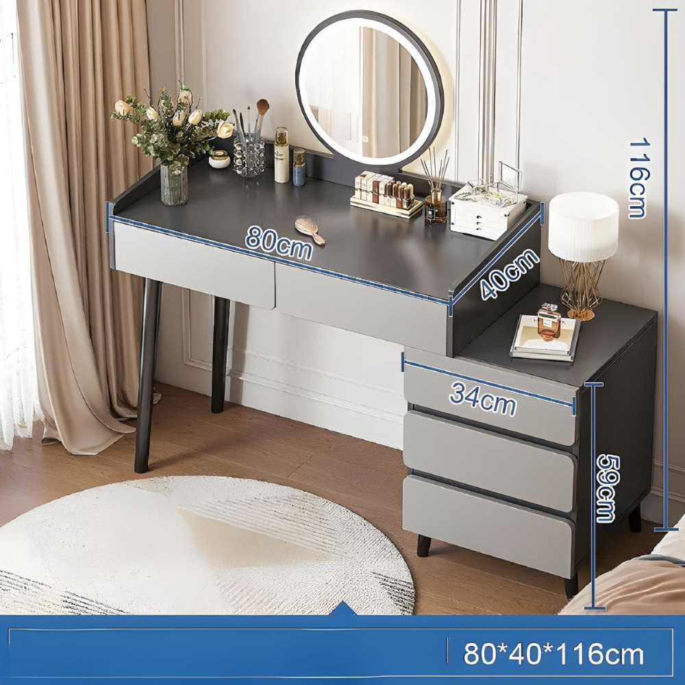 סט שידת איפור עם מראה ותאורת לד רוחב 106 ס"מ דגם RSM-2063 צבע אפור והדום בד יוקרתי דגם RSM-3014 שמנת מבית ROSSO ITALY - יבואן רשמי