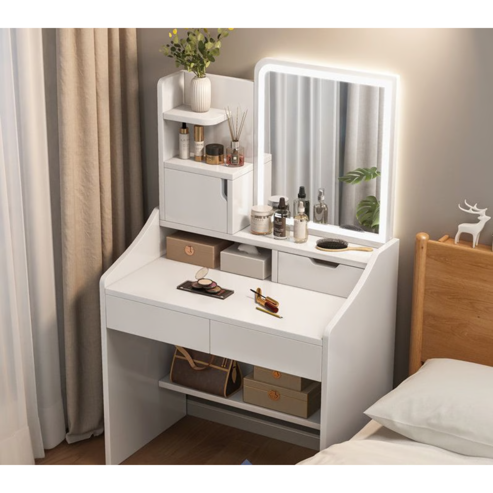שידת איפור עם מראה כולל תאורת LED ברוחב 70 ס"מ Rosso Italy RSM-1051 צבע לבן - יבואן רשמי